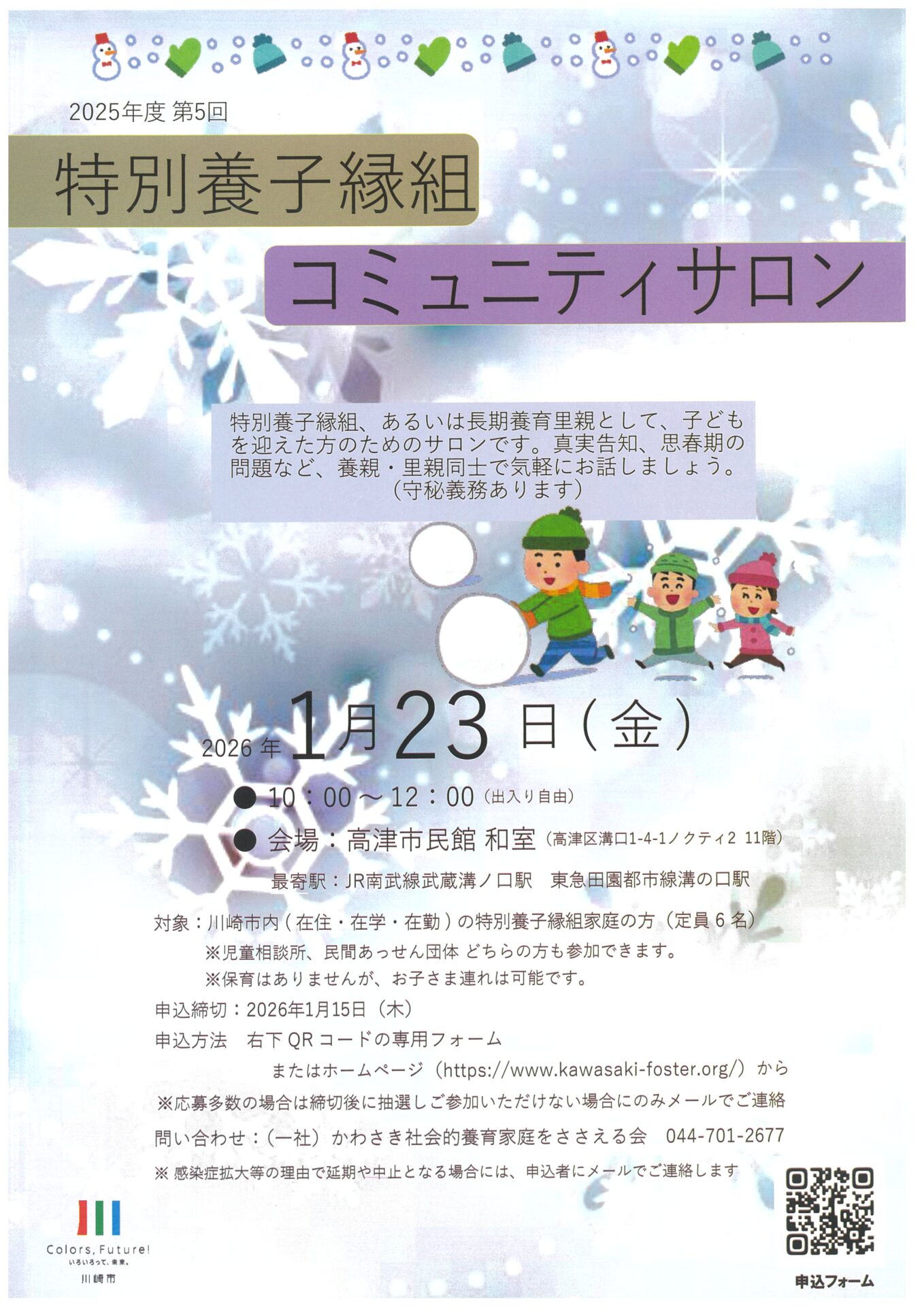 特別養子縁組、あるいは長期養育里親として、子どもを迎えた方のためのサロンです。 真実告知、思春期の問 […]