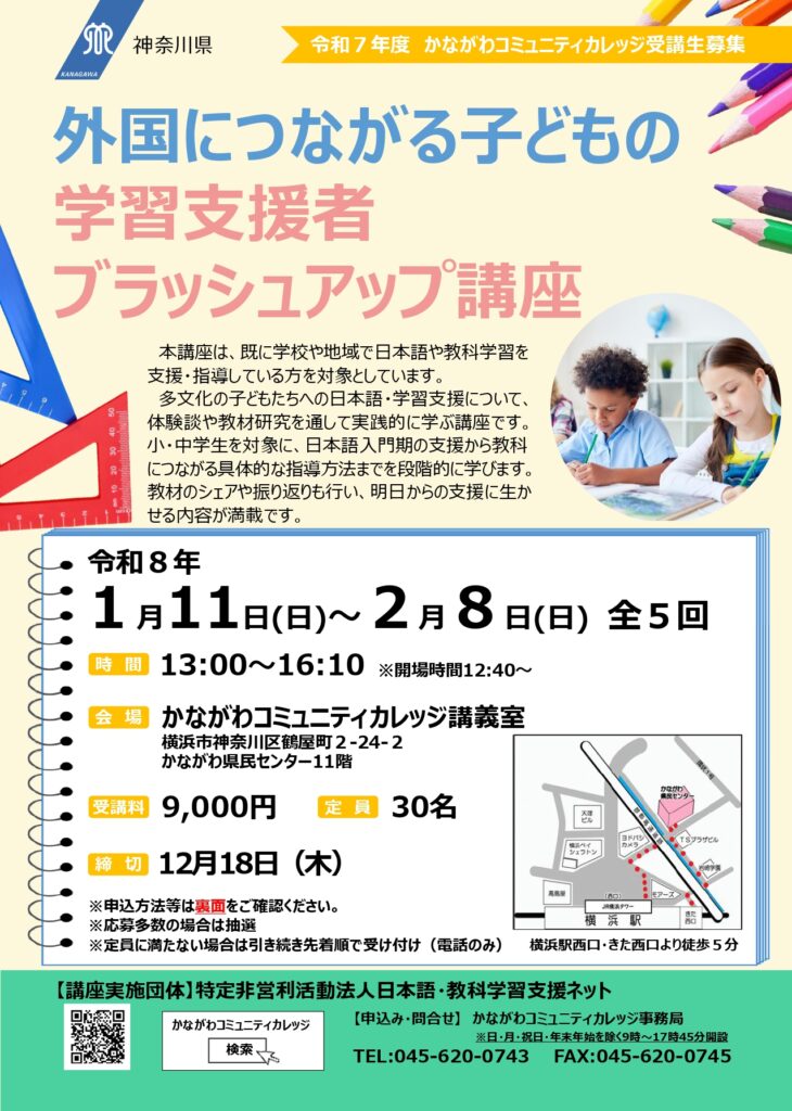 本講座は、既に学校や地域で日本語や教科学習を 支援・指導している方を対象としています。 多文化の子ど […]