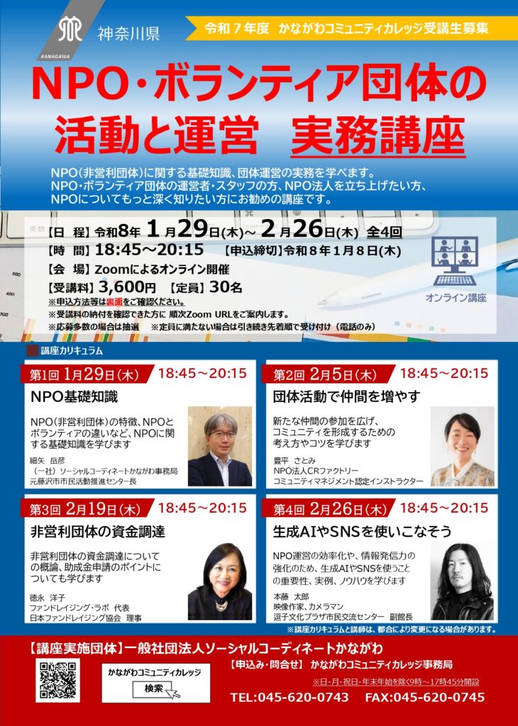 NPO(非営利団体)に関する基礎知識、団体運営の実務を学べます。 NPO・ボランティア団体の運営者・ […]
