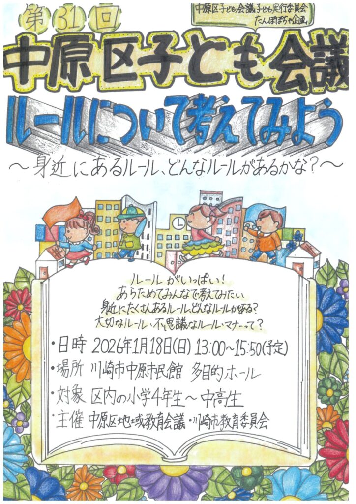 第31回中原区子ども会議 中原区子ども会議子ども実行委員会たんぽぽちゃ企画 ルールについて考えてみよ […]