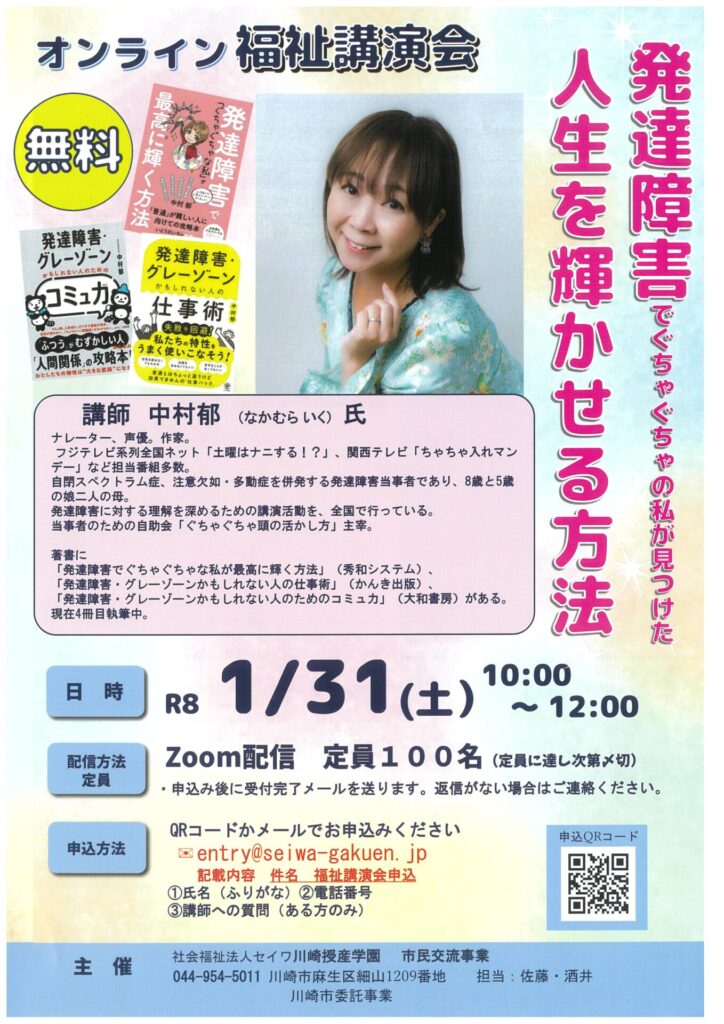 オンライン福祉講演会「発達障害でぐちゃぐちゃの私が見つけた人生を輝かせる方法」