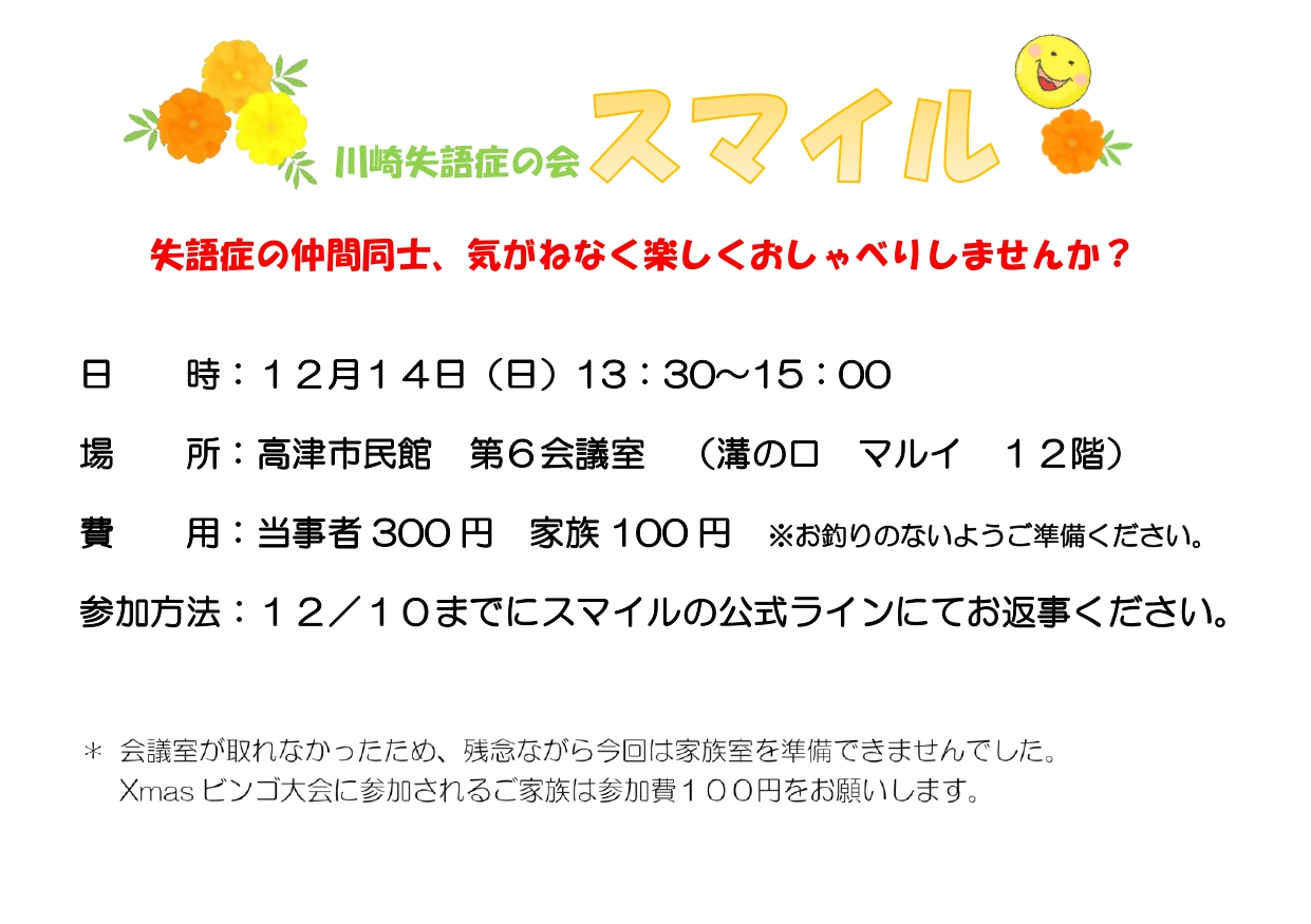 失語症の仲間同士で楽しくおしゃべりしましょう。 費用は300円。 申し込みはチラシのQRコードから公 […]
