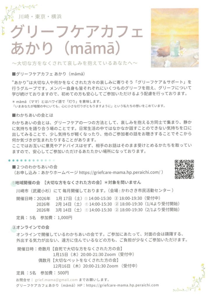 定員:各回5名 参加費:1000円 問合せ:grief.mama@gmail.com WEB:htt […]