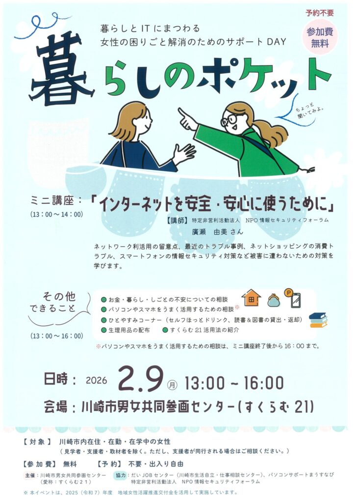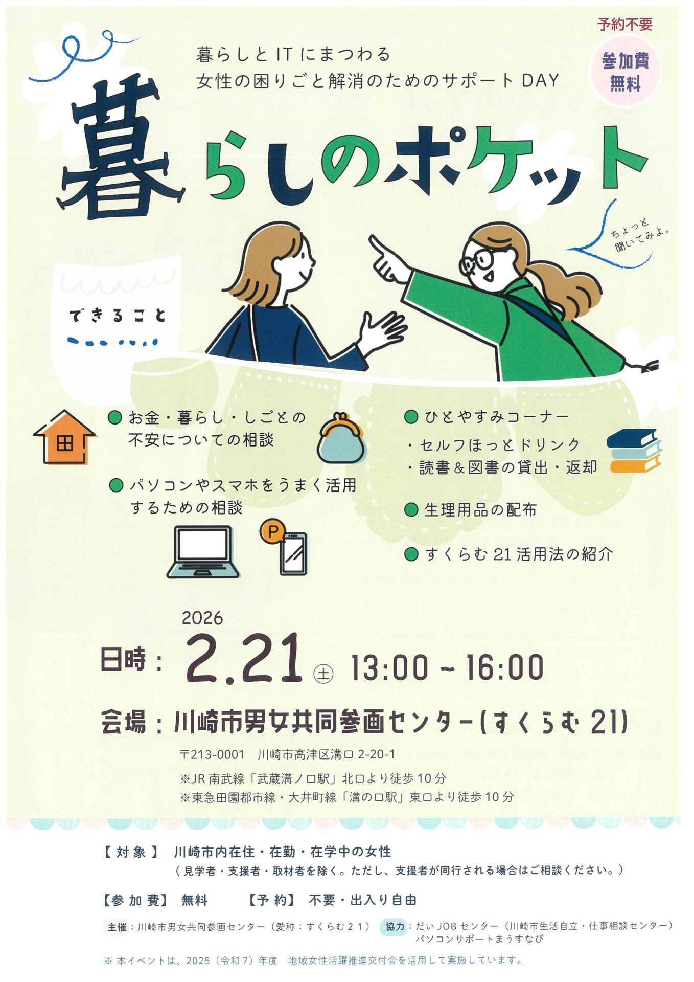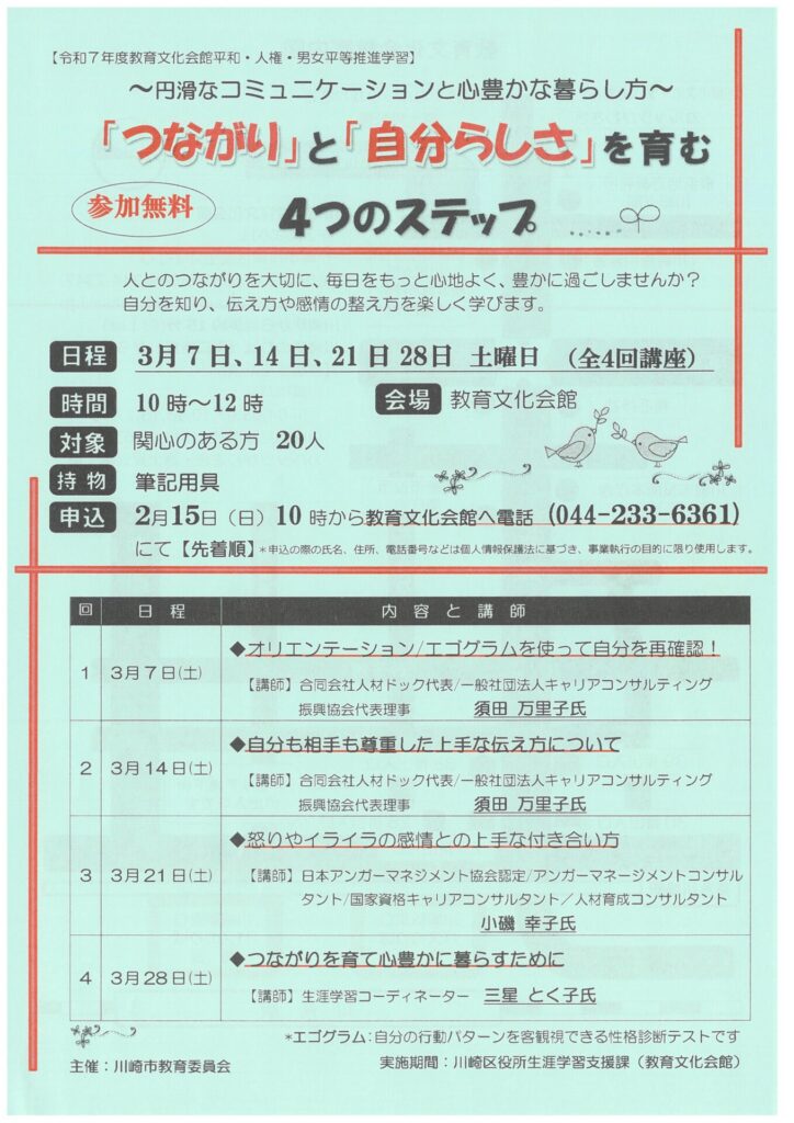 対象:外国人市民の方、楽しくおしゃべりしたい方 問合せ:高津市民館 電話:044-814-7603 […]