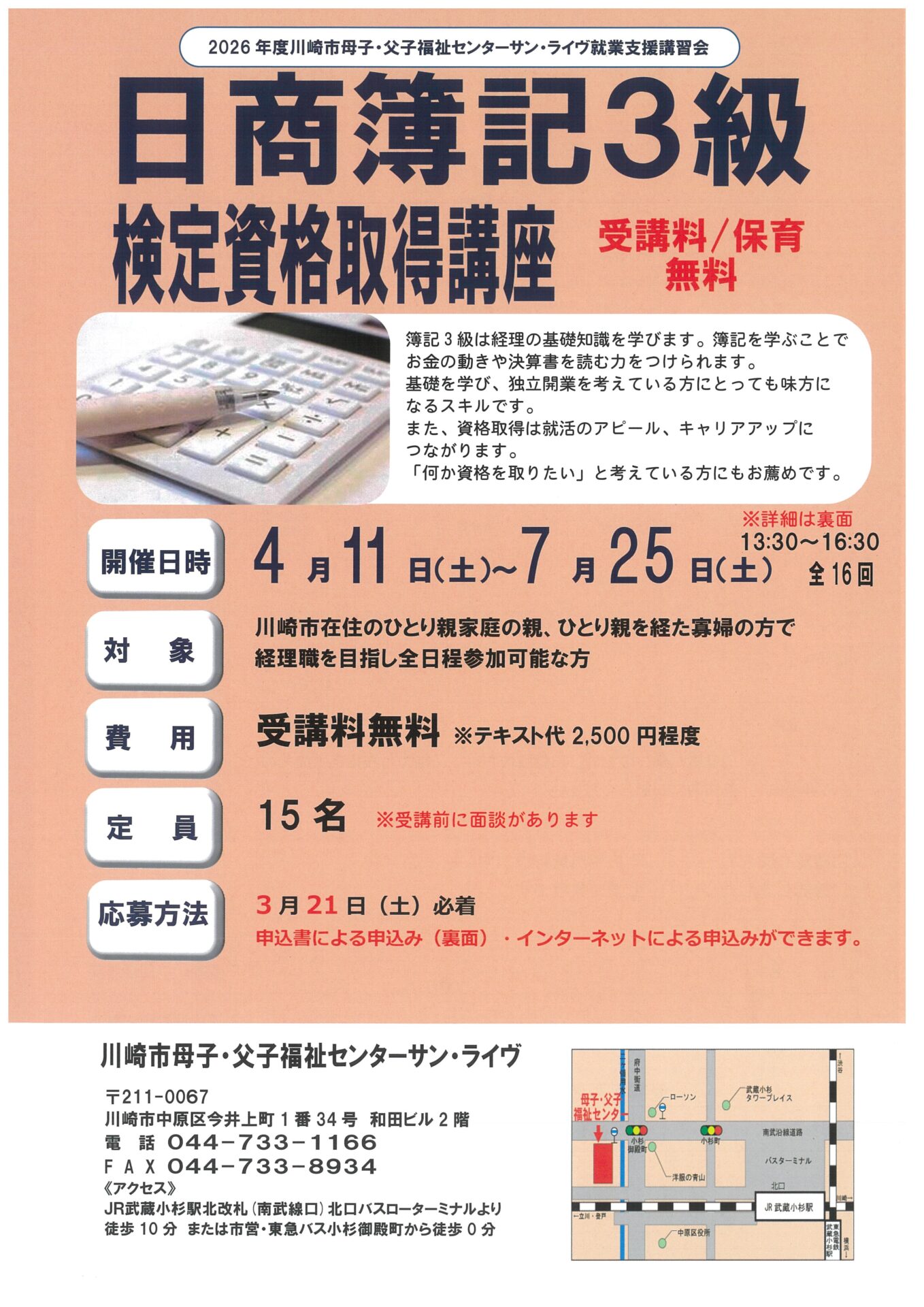 対象:川崎市内在住・在学・在勤の小学生以上 (小学生は保護者の同伴が必要です) 費用:無料 定 […]