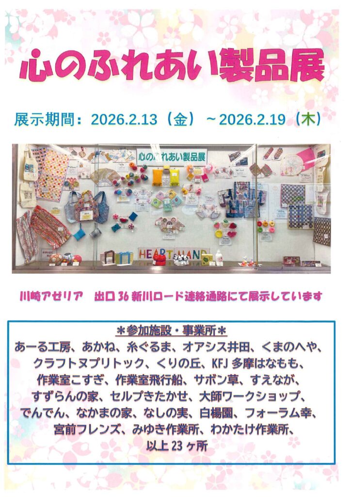 川崎市内の障がい者福祉施設 23施設でつくられた製品を展示しています。 問い合わせ: bu@tomo […]