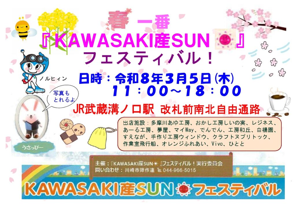 川崎市内の16の福祉施設で作られた製品の展示販売会です。 【問い合わせ先】 川崎市障作連(044-9 […]