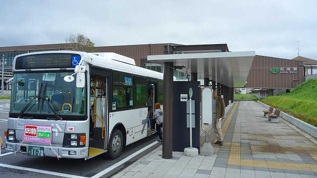 同じく石岡南台駅。バスの本数は2系統合わせて日中毎時2-3本。鉄道時代と同程度の本数でしょうか。それでも平日日中時間帯は、混んでいる便と空いている便の差が激しい印象でした。空港のフライト時刻に左右されるのでしょうか。