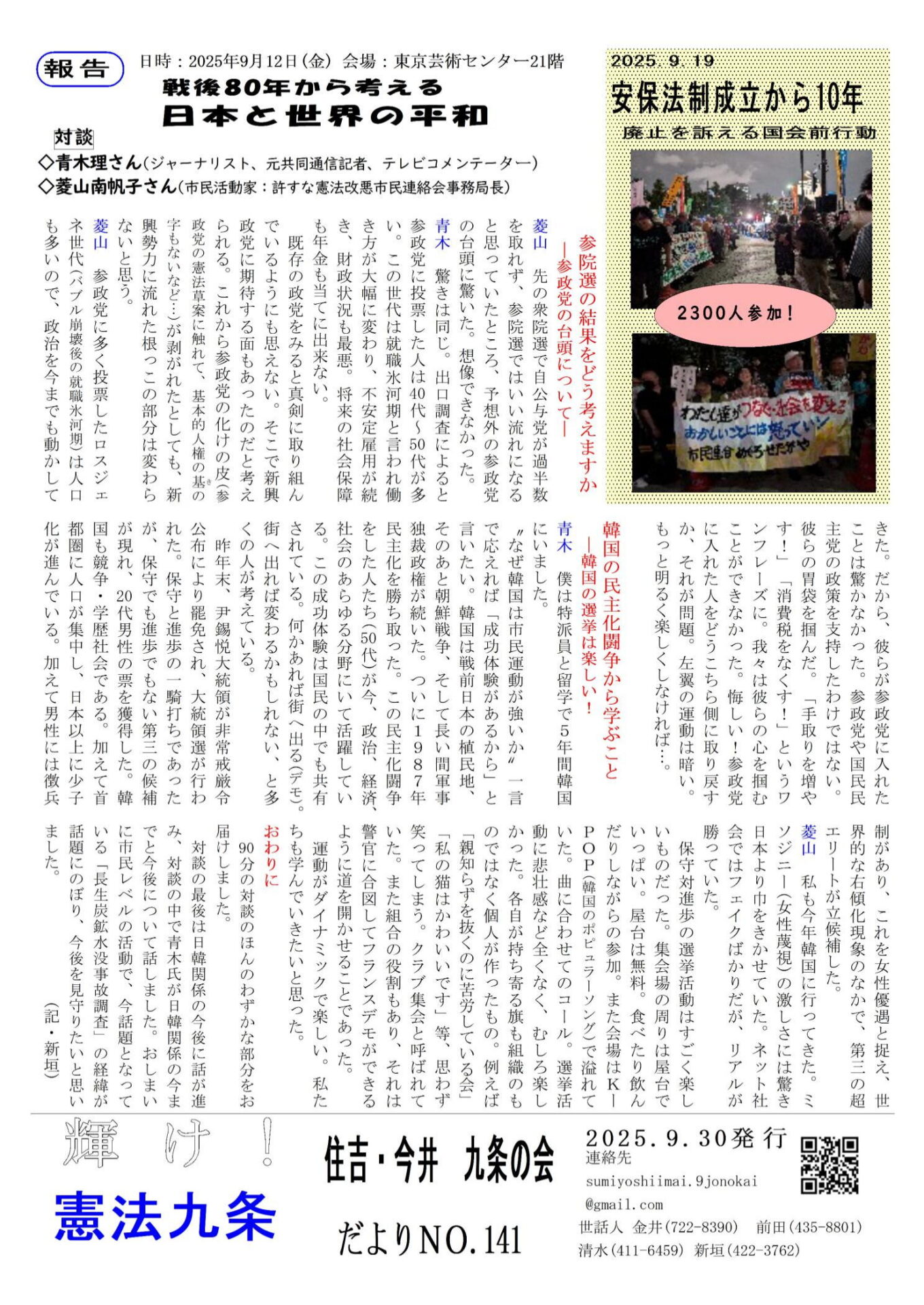 住吉・今井九条の会 メールアドレス sumiyoshiimai.9jonokai@gmail.com