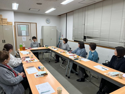 3月11日(水)宮前支部茶話会を宮前区役所1階の宮前区民活動支援コーナーで行いました。宮前区役所は急な坂の上にあるので不便なことを心配しましたが、加藤会長をはじめ役員の皆様に揃って出席していただき、支部の会員を合わせて参加人数は9名でした。今回は昨年入会した若いお母さんも出席してくださり、少人数ですが幅広い年代の親睦の場になりました。
