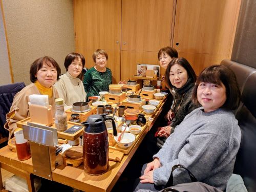 懇親会は、場所を移して「釜めしと天ぷらの定食」を食べながら、たくさんおしゃべりをし、たくさん笑いました。前半の支部会でご家庭の事情で会を辞めると話された方から「これからもよろしく!」と会に残ると話され、懇親会はますます盛り上がりました。