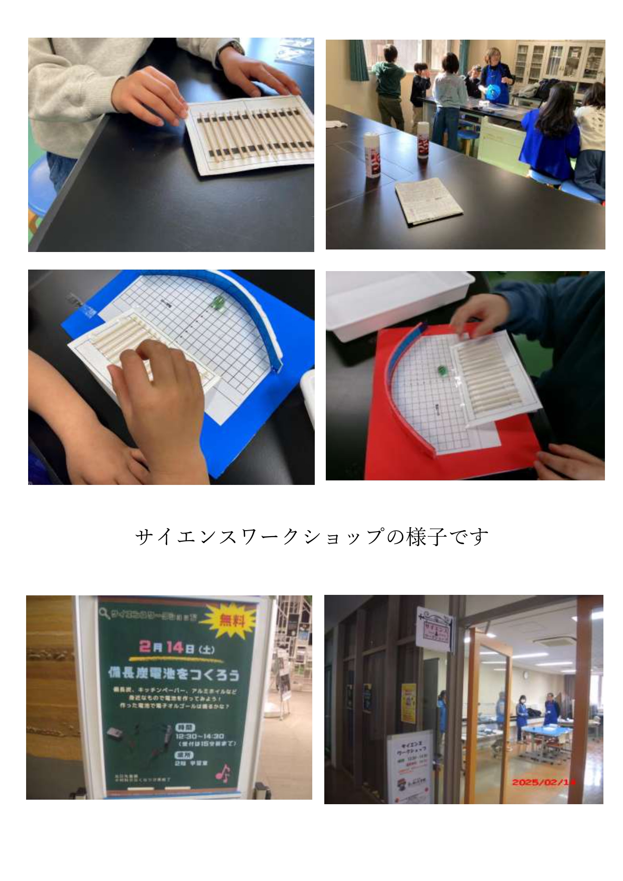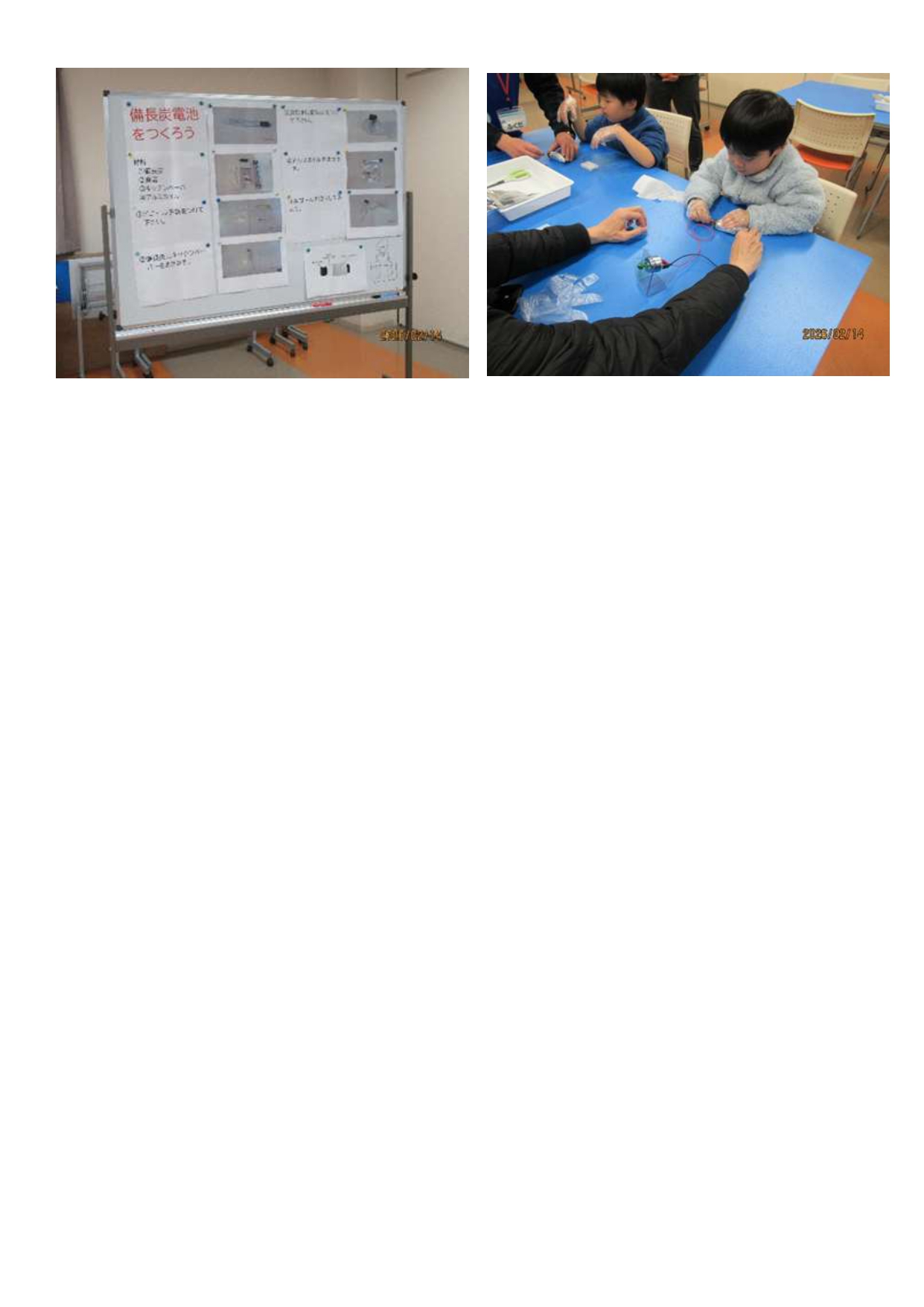 2月14日(土)かわさき宙と緑の科学館のサイエンス教室で「放物線の効果を調べてその効果を利用したオモチャを作ってみよう」、 サイエンスワークショップで「備長炭電池を作ろう」をやりました。