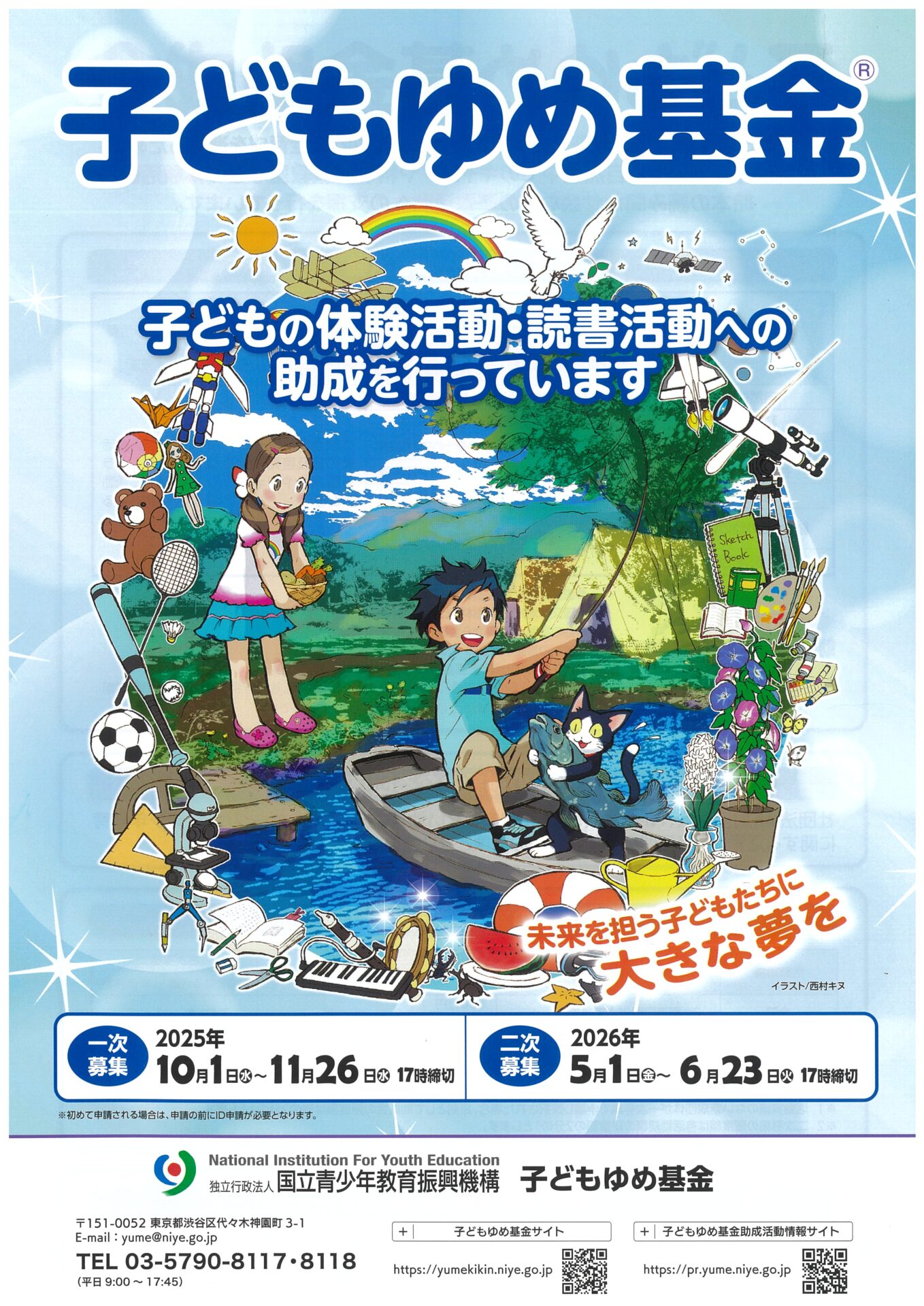 子どもゆめ基金は国と民間が協力して子どもの体験・読書活動などを応援し、子どもの健全育成の手助けをする...