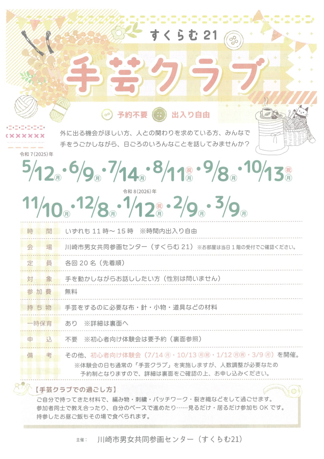 すくらむ21 手芸クラブ(主催:川崎市男女共同参画センター)