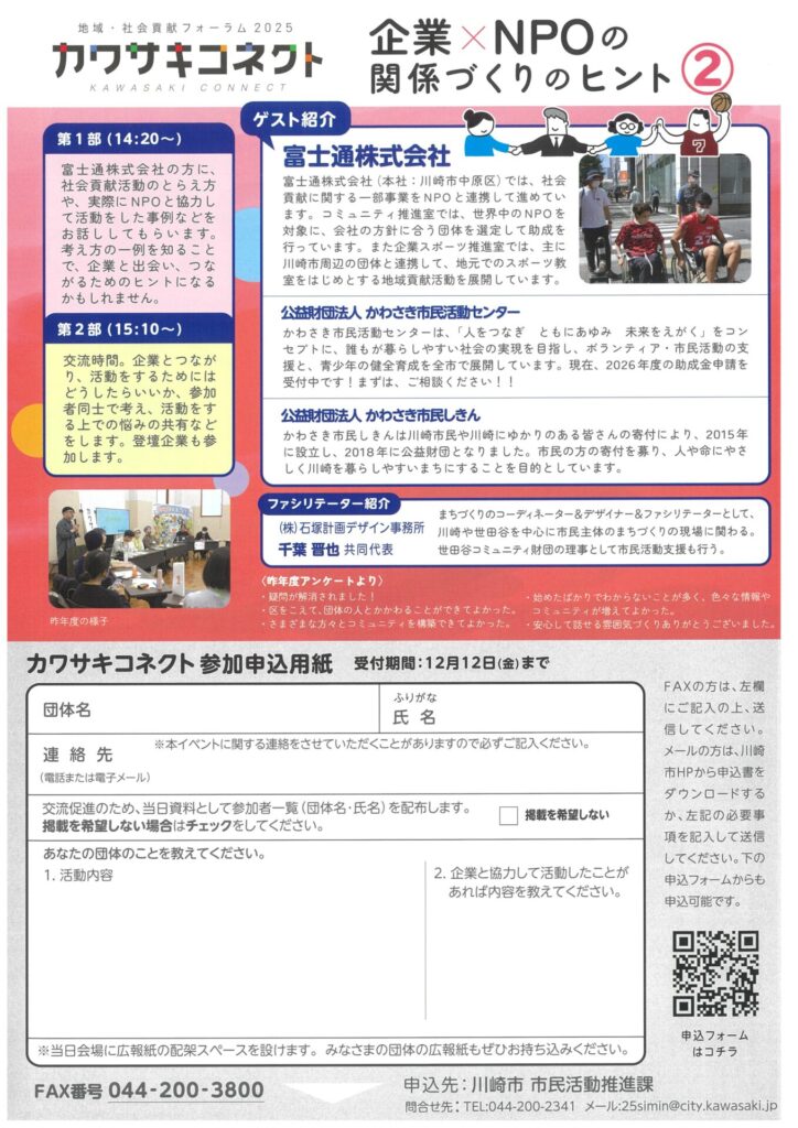 ホーム » 電子チラシ » 地域・社会貢献フォーラム 2025 カワサキコネクト 企業×NPOの関係づくりのヒント②