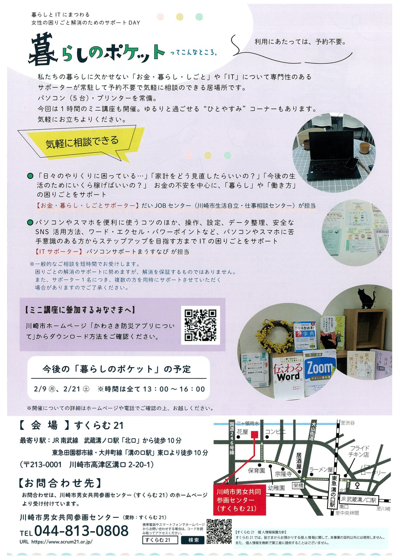ホーム » 電子チラシ » 暮らしとITにまつわる女性の困りごと解消のためのサポートDAY 暮らしのポケット ミニ講座「かわさき防災アプリの活用講座」