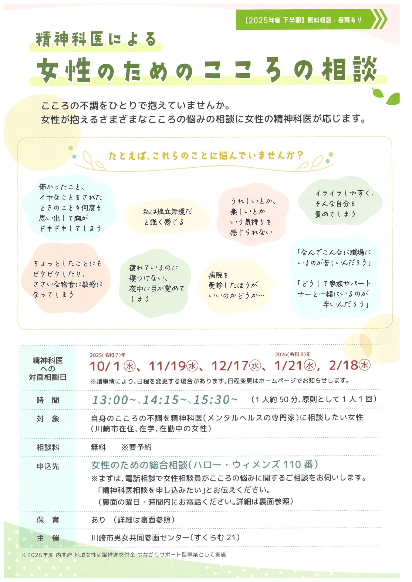 精神科医による女性のためのこころの相談