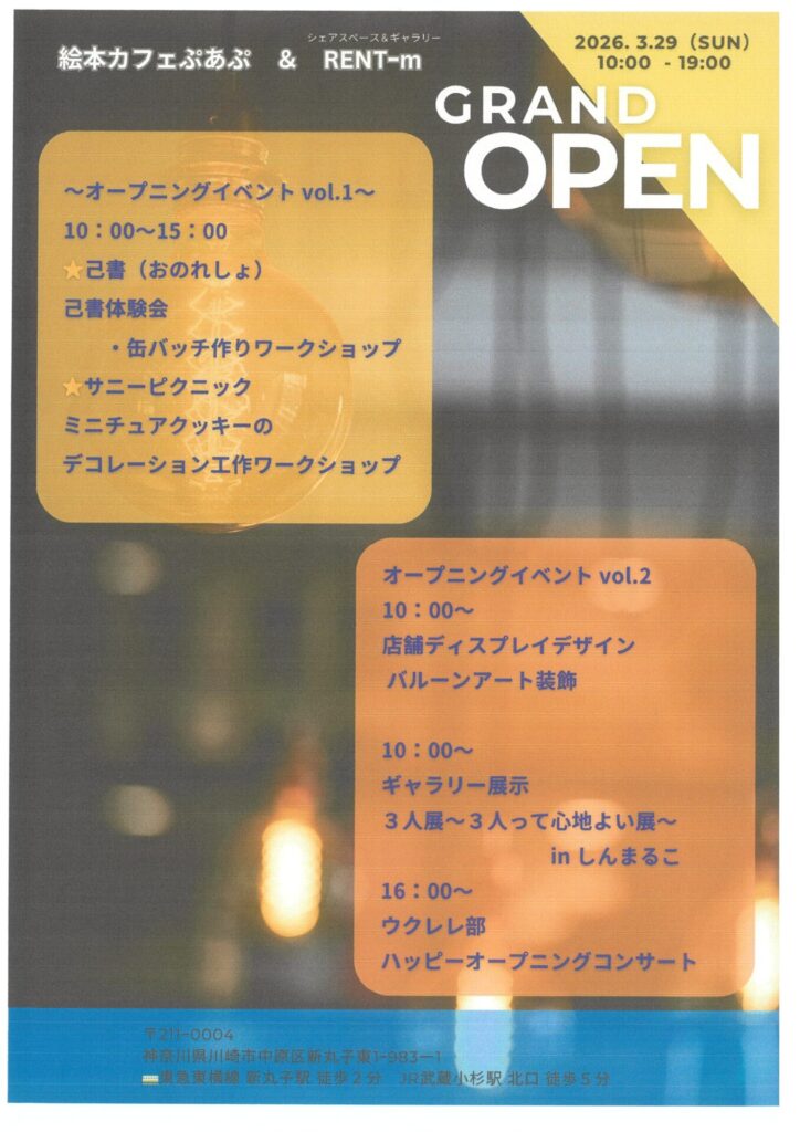 絵本カフェぷあぷ & シェアスペース&ギャラリーRENT-m(レントエム) GRAND OPEN