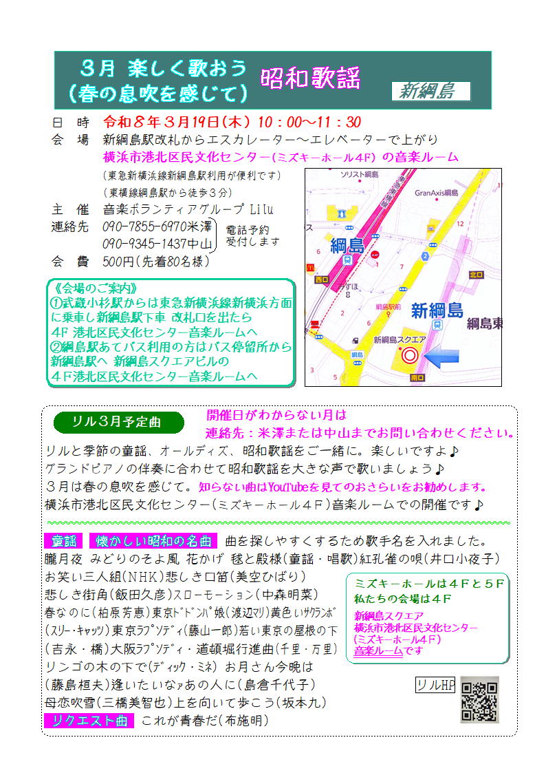 3月 楽しく歌おう昭和歌謡(春の息吹を感じて)