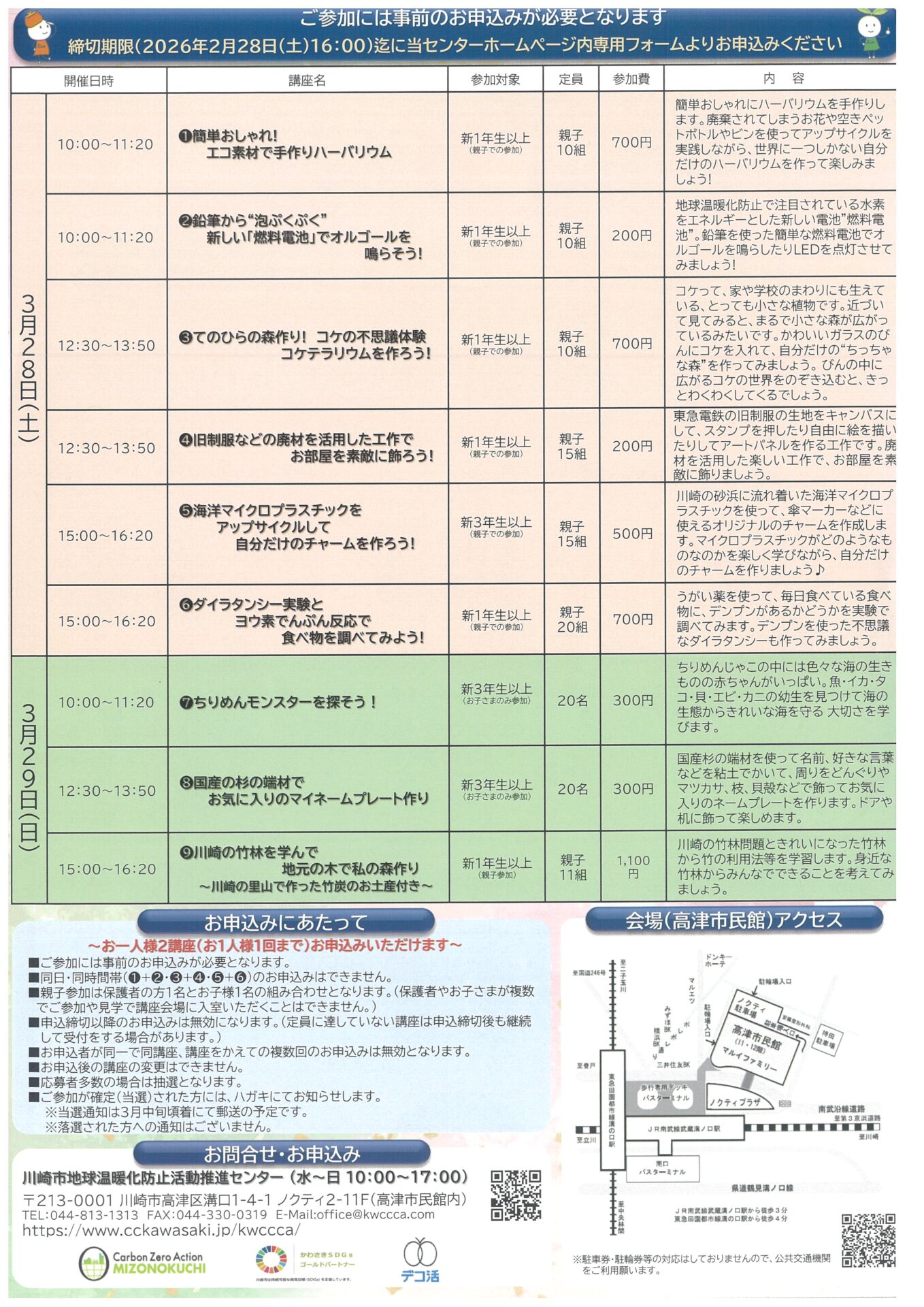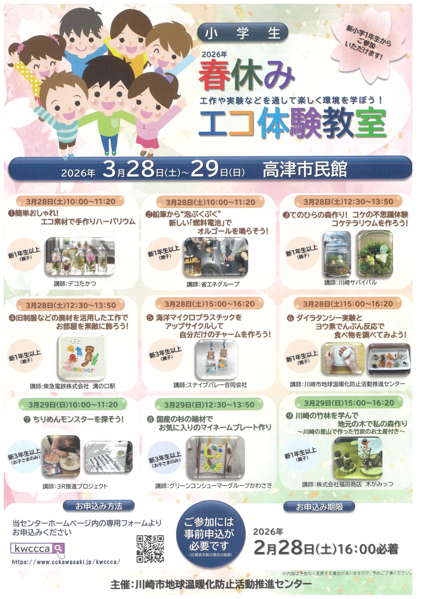 小学生 2026年春休みエコ体験教室 工作や実験などを通して楽しく環境を学ぼう!