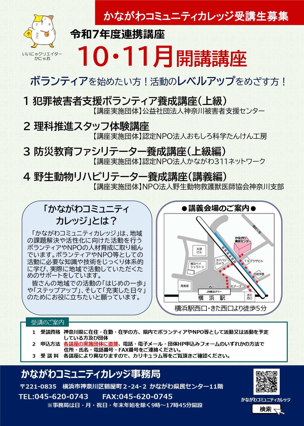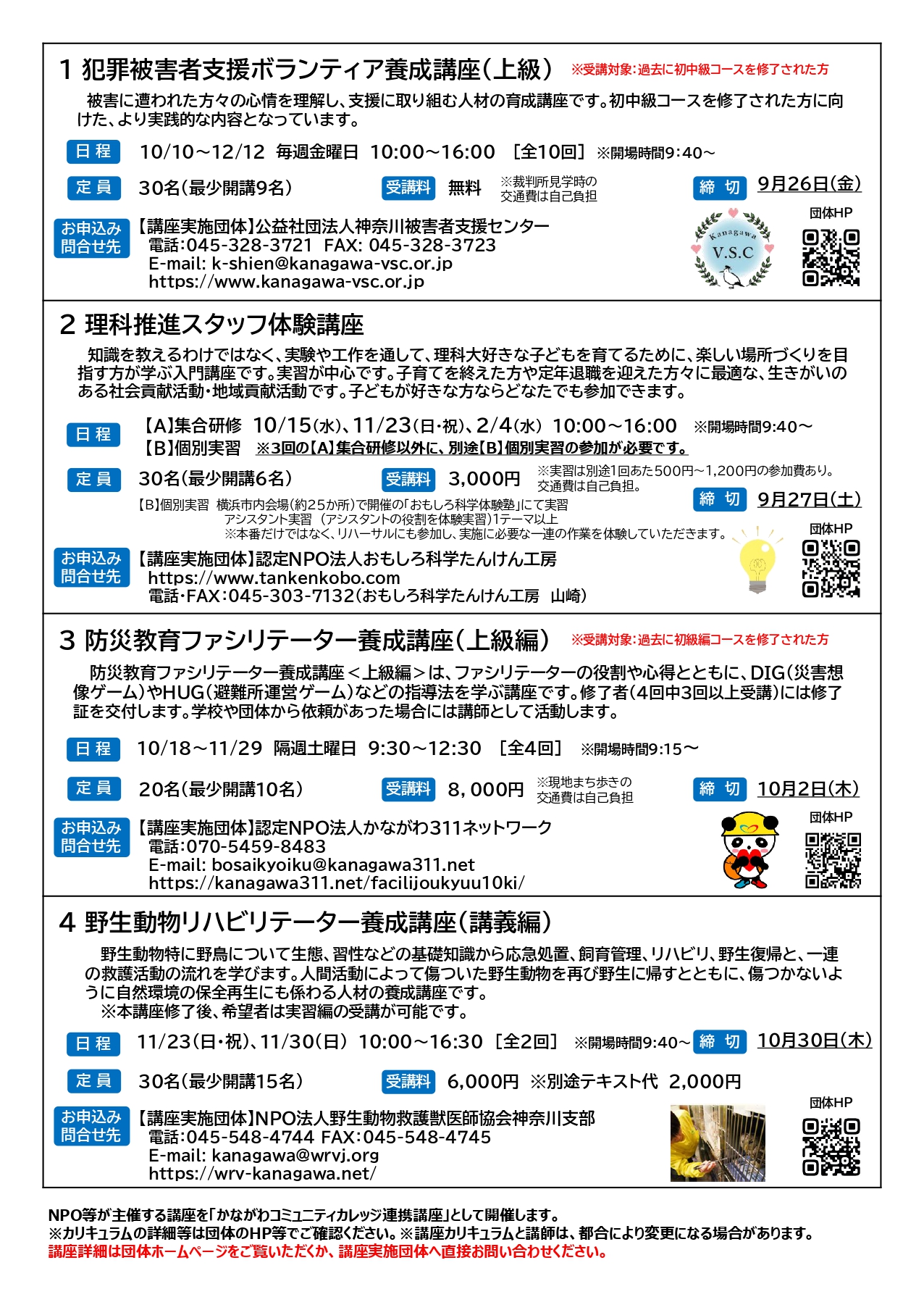 【問い合わせ先】 チラシ裏面記載の各講座実施団体連絡先へ直接ご連絡下さい。