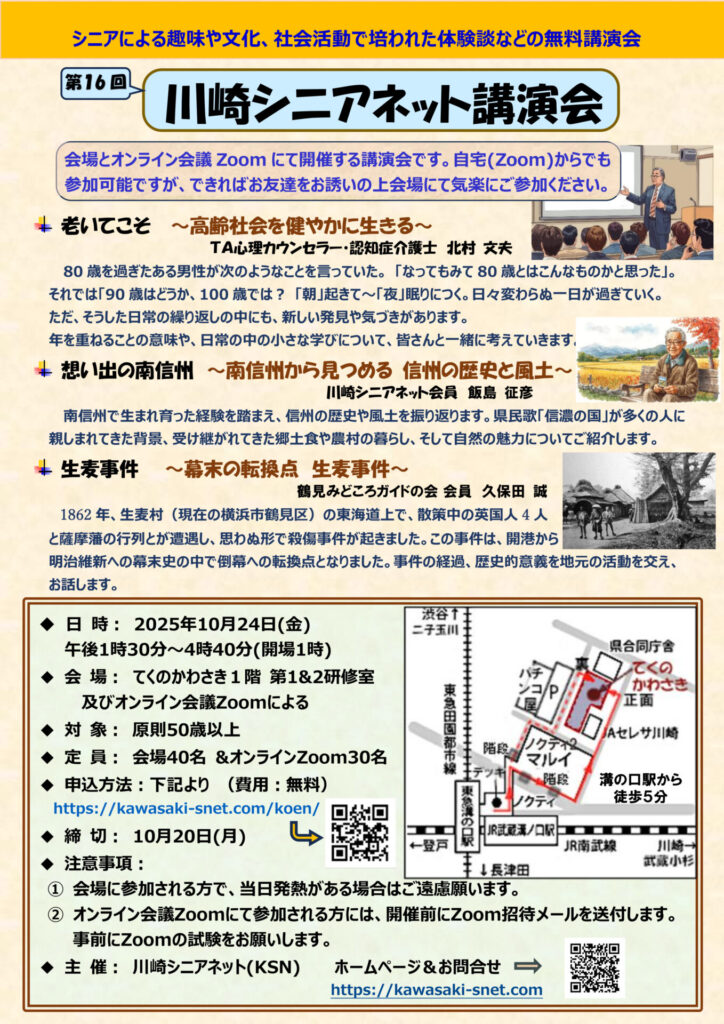 【問い合わせ先】 ksn_office@kawasaki-snet.com 【関連URL】 https://kawasaki-snet.com/koen/index.html