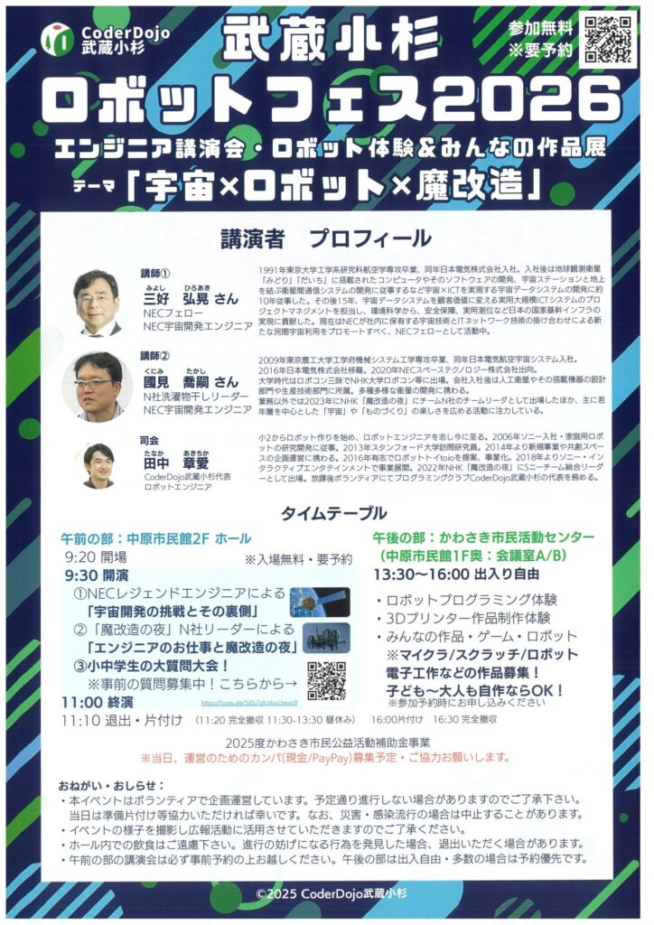 申し込み:事前予約制 https://musashikosugi-robot-fes-2026.peatix.com