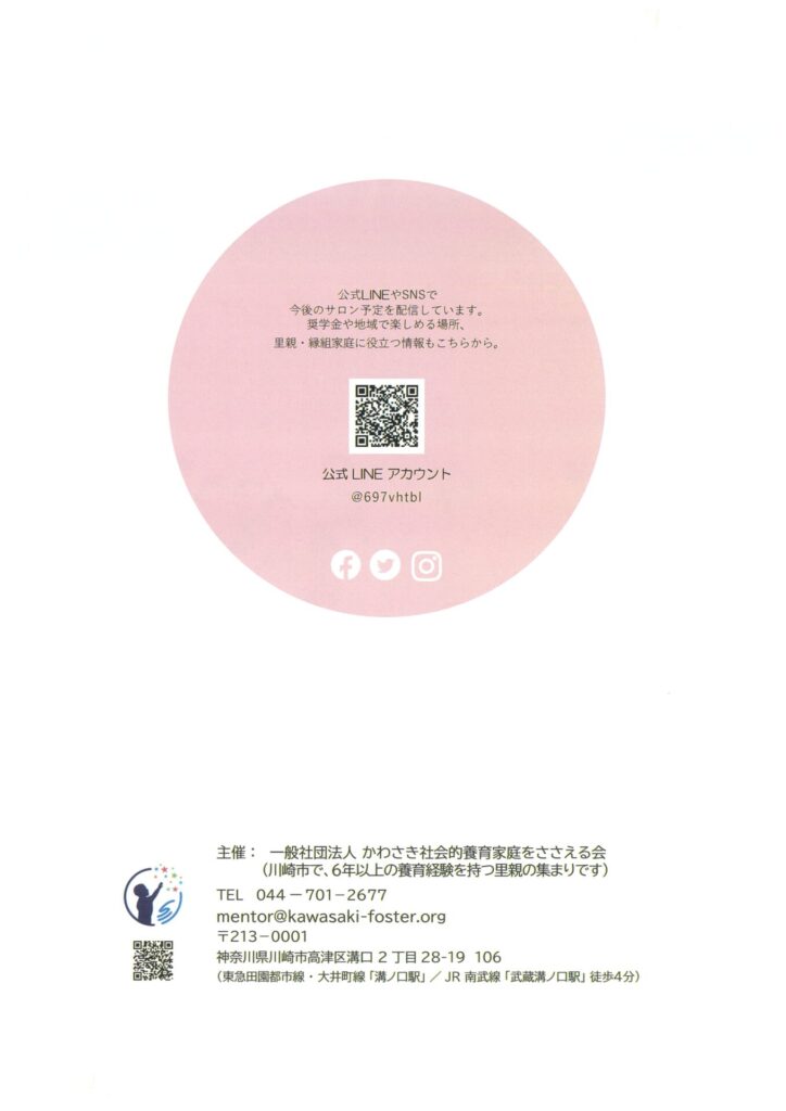 真実告知、思春期の問題など、養親・里親同士で気軽にお話ししましょう。(守秘義務あります)