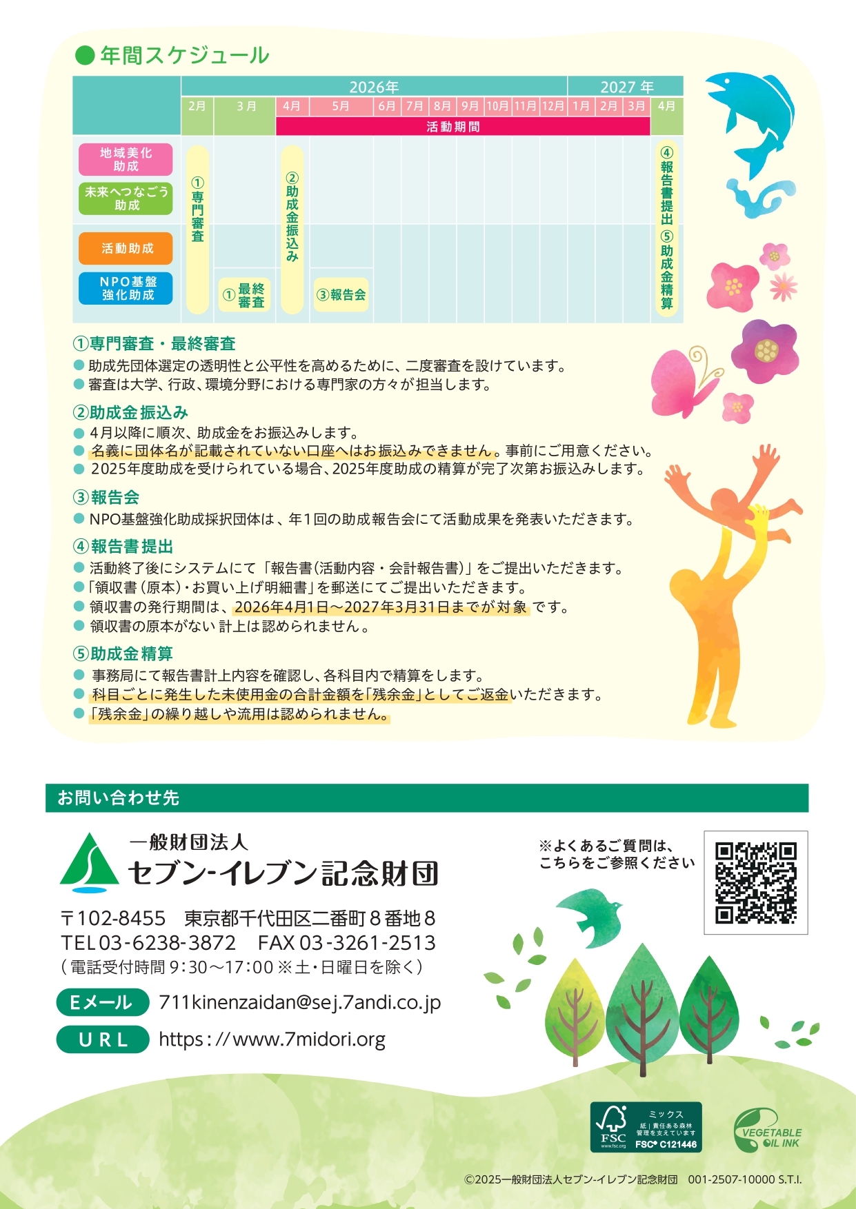 セブンイレブン記念財団2026年度「環境市民活動助成」10/31締切