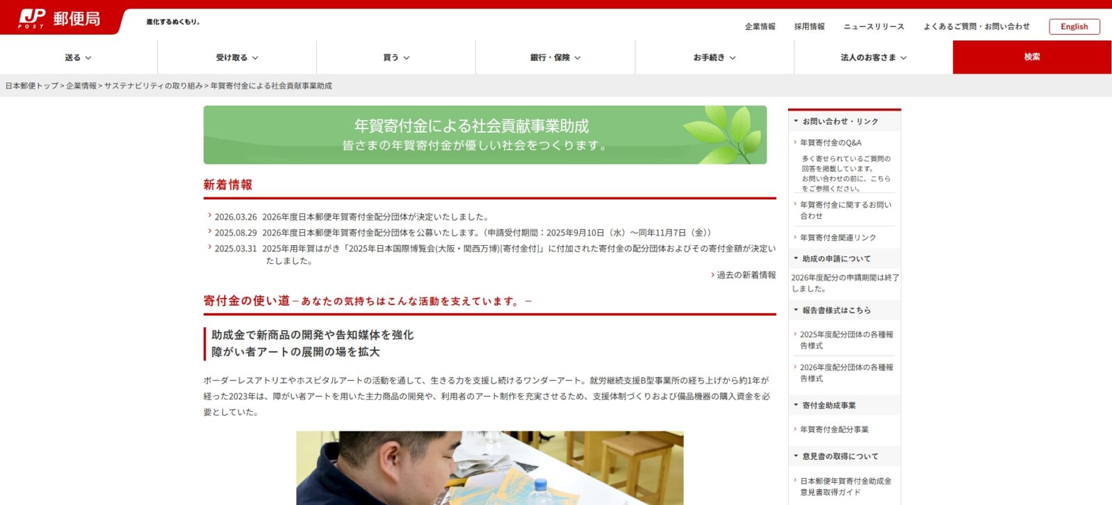 2026年度 日本郵便年賀寄付金配分団体およびその寄付金額の決定 – 日本郵便