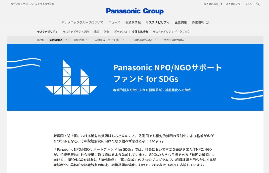 ▼Panasonic NPO/NGOサポートファンド for SDGs トップページ