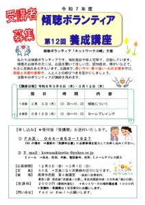 ※問合わせ先:傾聴ボランティア「ネットワーク崎」メールkawasakinetto@yahoo.co.jp