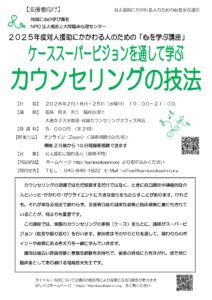 【支援者向き】2025年度心を学ぶ講座「ケーススーパービジョンを通して学ぶ カウンセリングの技法」