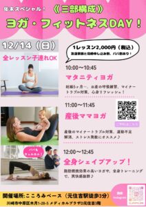 12/14(日)【年末スペシャル】ママ・パパ・プレママ歓迎!三部構成のヨガ・フィットネスイベント!