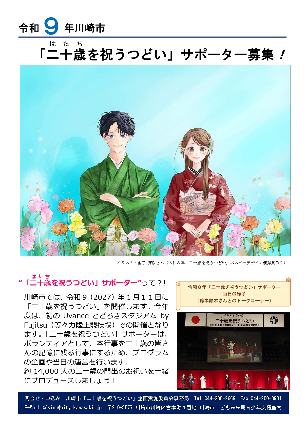【主催】: 川崎市「二十歳を祝うつどい」企画委員会