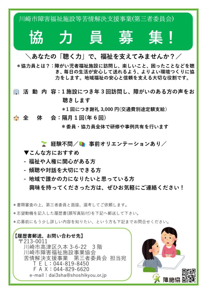 【問い合わせ】 川崎市障害福祉施設事業協会