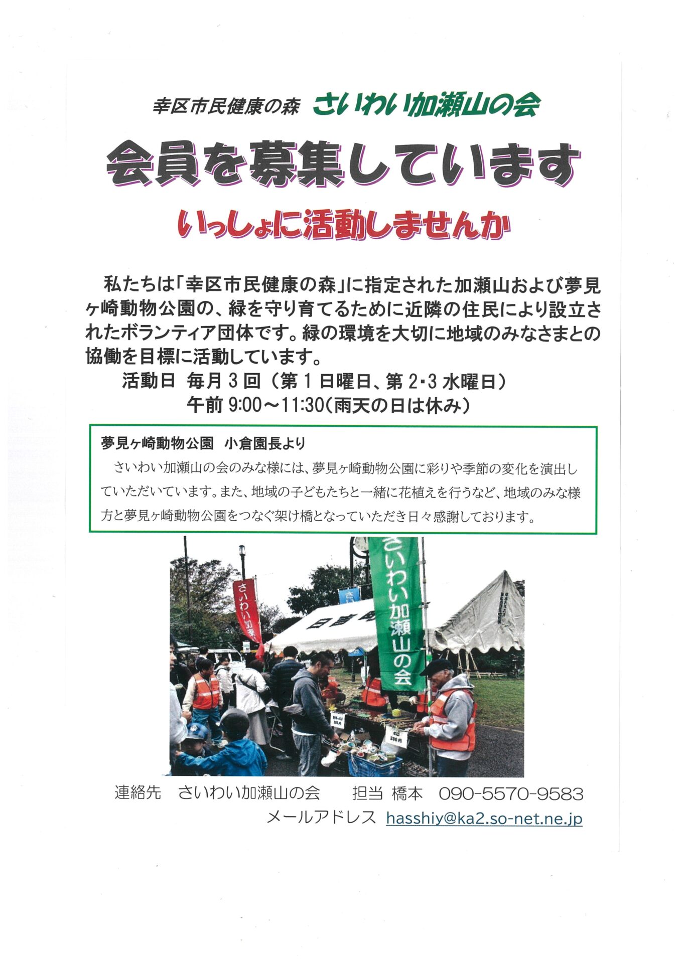 幸区市民健康の森 さいわい加瀬山の会 会員募集